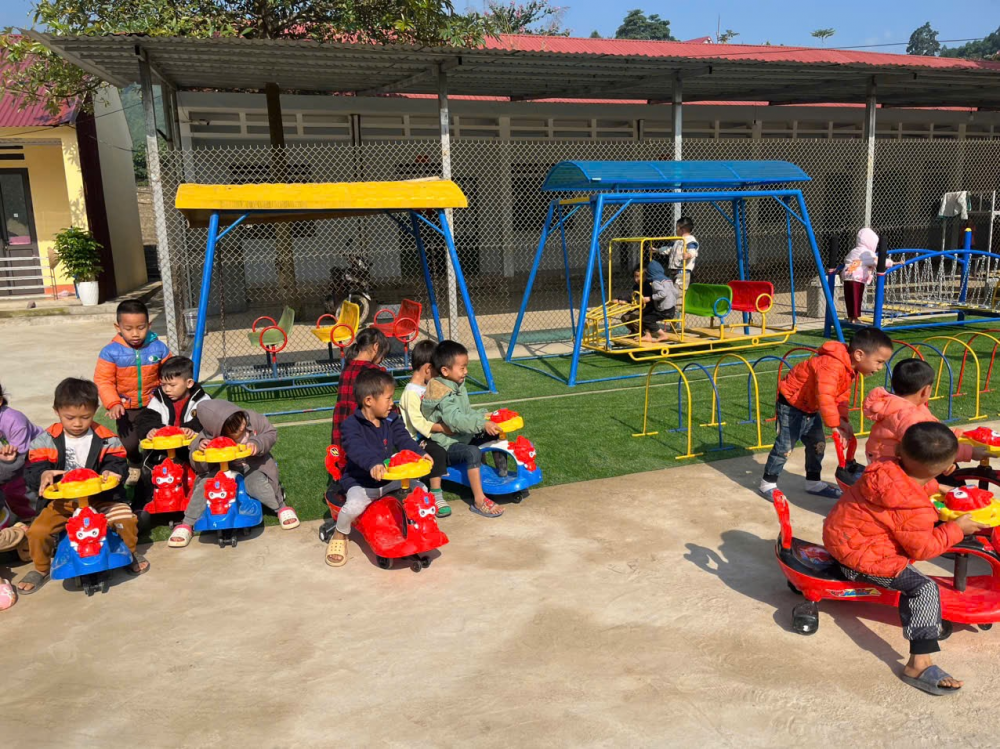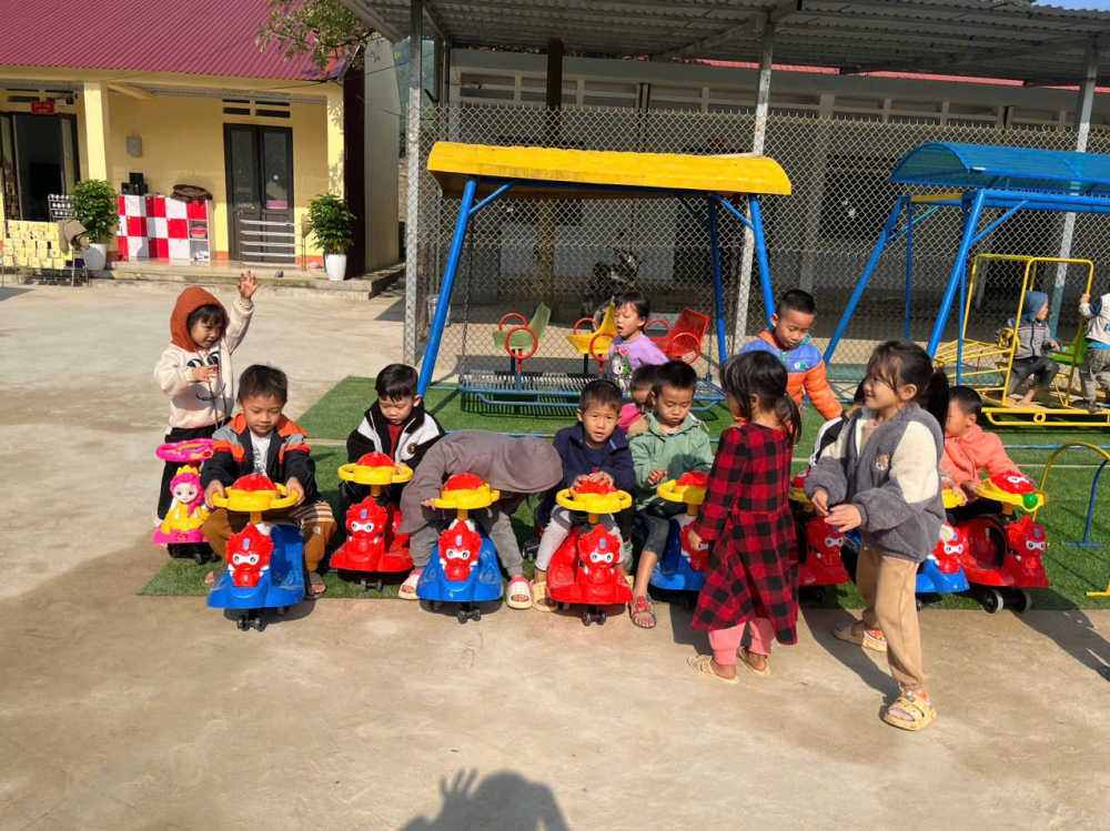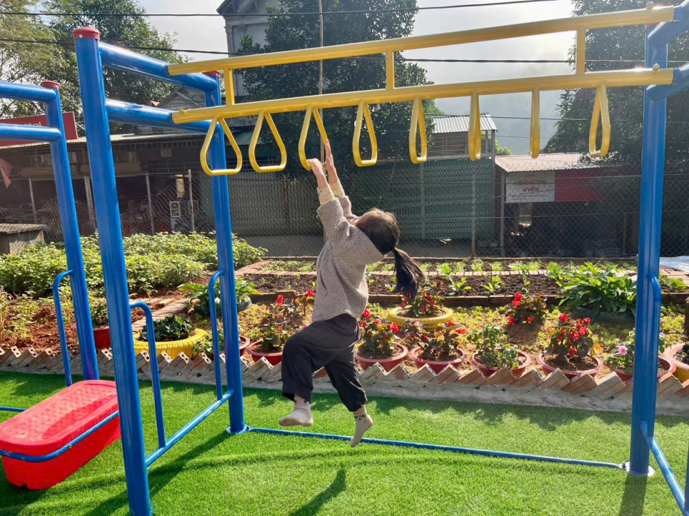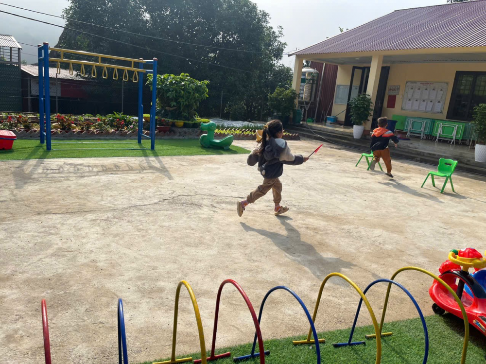 Cuối buổi hoạt động, cô cho trẻ chơi theo ý thích với các đồ chơi ngoài trời như: cầu trượt, xích đu, bập bênh, bóng… Trẻ được tự do lựa chọn trò chơi phù hợp với sở thích của mình dưới sự quan sát, hướng dẫn của cô giáo.