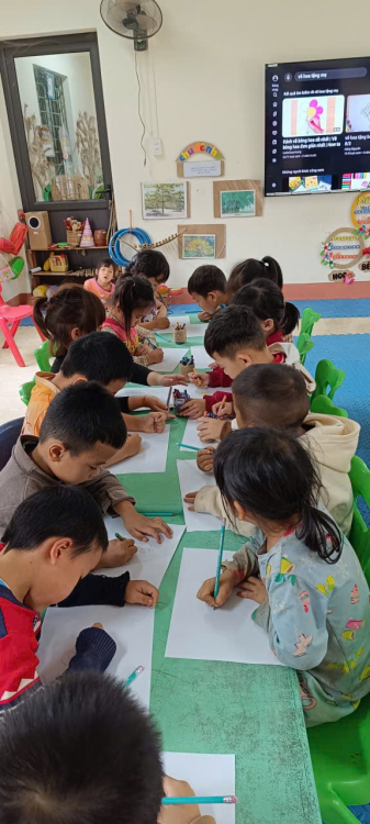 Dưới sự hướng dẫn của cô giáo, các bé được tự tay cắt, dán, tô màu và trang trí những tấm thiệp xinh xắn. Mỗi tấm thiệp là một món quà nhỏ nhưng chứa đựng tình cảm yêu thương và lòng biết ơn của các con dành cho những người phụ nữ thân yêu trong gia đình.