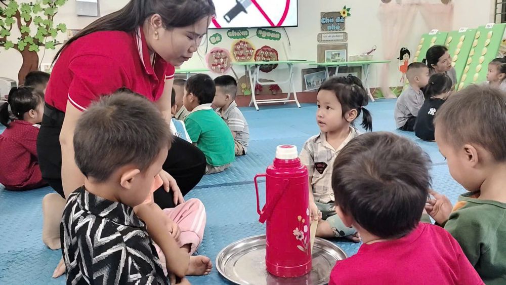 Trẻ được chia sẻ về đặc điểm, công dụng của phích nước, từ đó trẻ biết được phích nước cũng là vật dụng nguy hiểm trong gia đình. Nếu nghiêng đổ, nước nóng có thể gây bỏng nặng, nếu đổ vỡ các mảnh sành trong phích có thể làm bé đứt chân, tay. Vì vậy, bé không được mở nắp hay rót nước từ phích, và cần tránh chơi gần khu vực có phích nước.