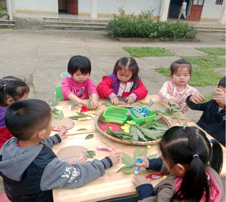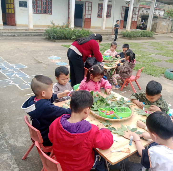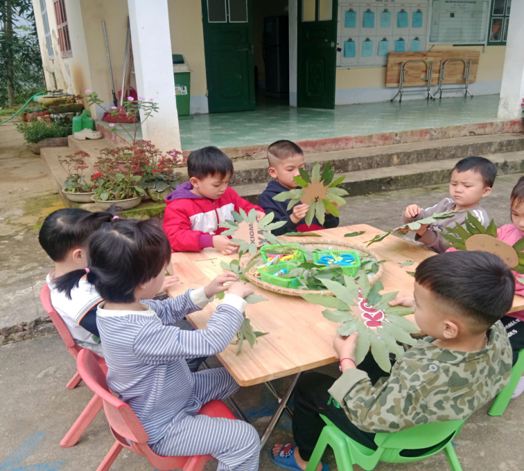Hoạt động không chỉ giúp các bé phát triển kỹ năng tạo hình mà còn mang lại niềm vui, sự hứng thú khi được học tập và vui chơi trong không gian ngoài trời. Kết thúc hoạt động, các bé rất tự hào khi cầm trên tay sản phẩm do chính mình làm ra.